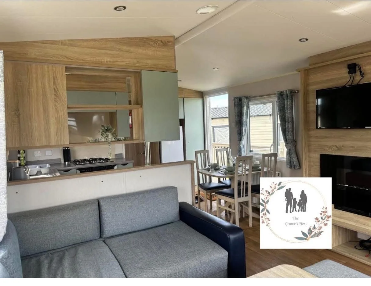 The lounge area is fully furnished with a smart TV and amazon Fire Stick. The L-shaped sofa gives plenty of room to sit and relax whilst either taking in the views, or watching that movie you’ve been waiting to make time for. With plenty of family games in the caravan and the coffee table a family games night is always a possibility from the comfort of the sofa.