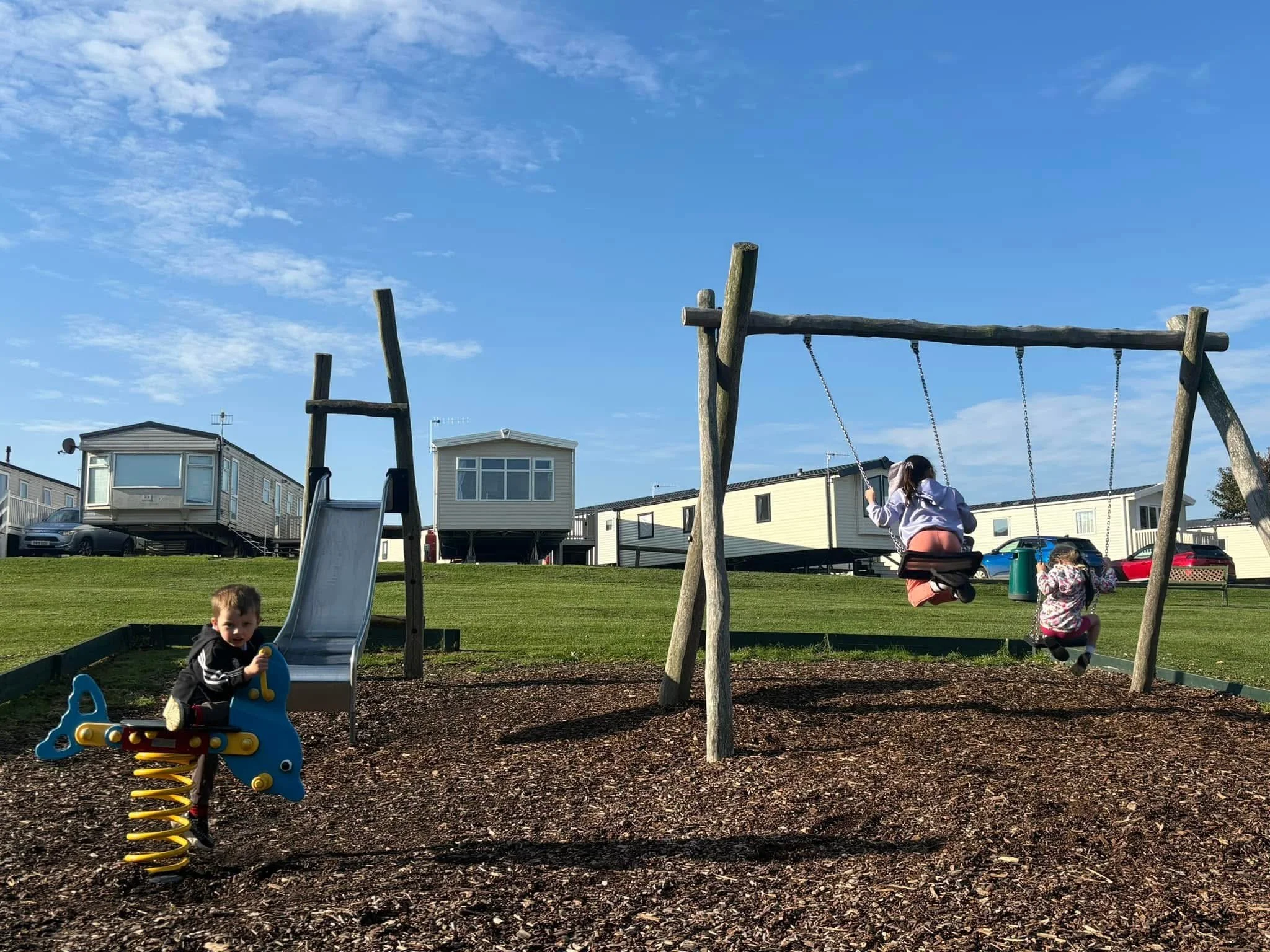 To top off the beautiful caravan you have a play park straight opposite with a direct view from the living room. The Crowes Nest caravan is the one between the slide and the swings.