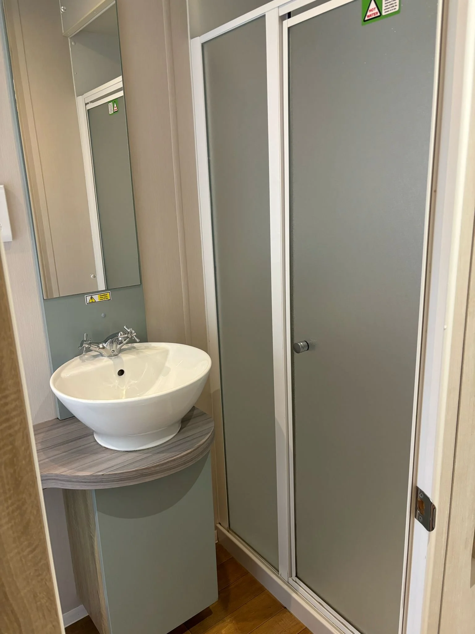 The family Bathroom comprises of a toilet, sink with mirror and large shower. There is a portable potty provided for young families. A heated towel radiator is also an added little bonus.